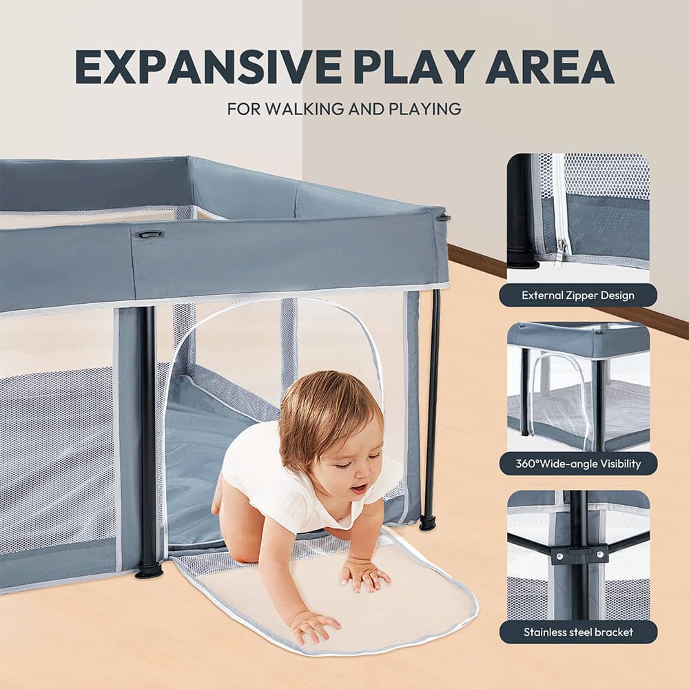 وفّر لطفلك مساحة لعب آمنة ومريحة مع حظيرة لعب للأطفال قابلة للطي مع بساط وحقيبة حمل، مصممة لدعم الرضّع والأطفال الصغار أثناء اللعب والراحة والأنشطة اليومية. توفّر هذه الحظيرة الواسعة بيئة آمنة تسمح للأطفال بالزحف والاستكشاف وتطوير المهارات الحركية، بينما يستمتع الوالدان براحة البال.